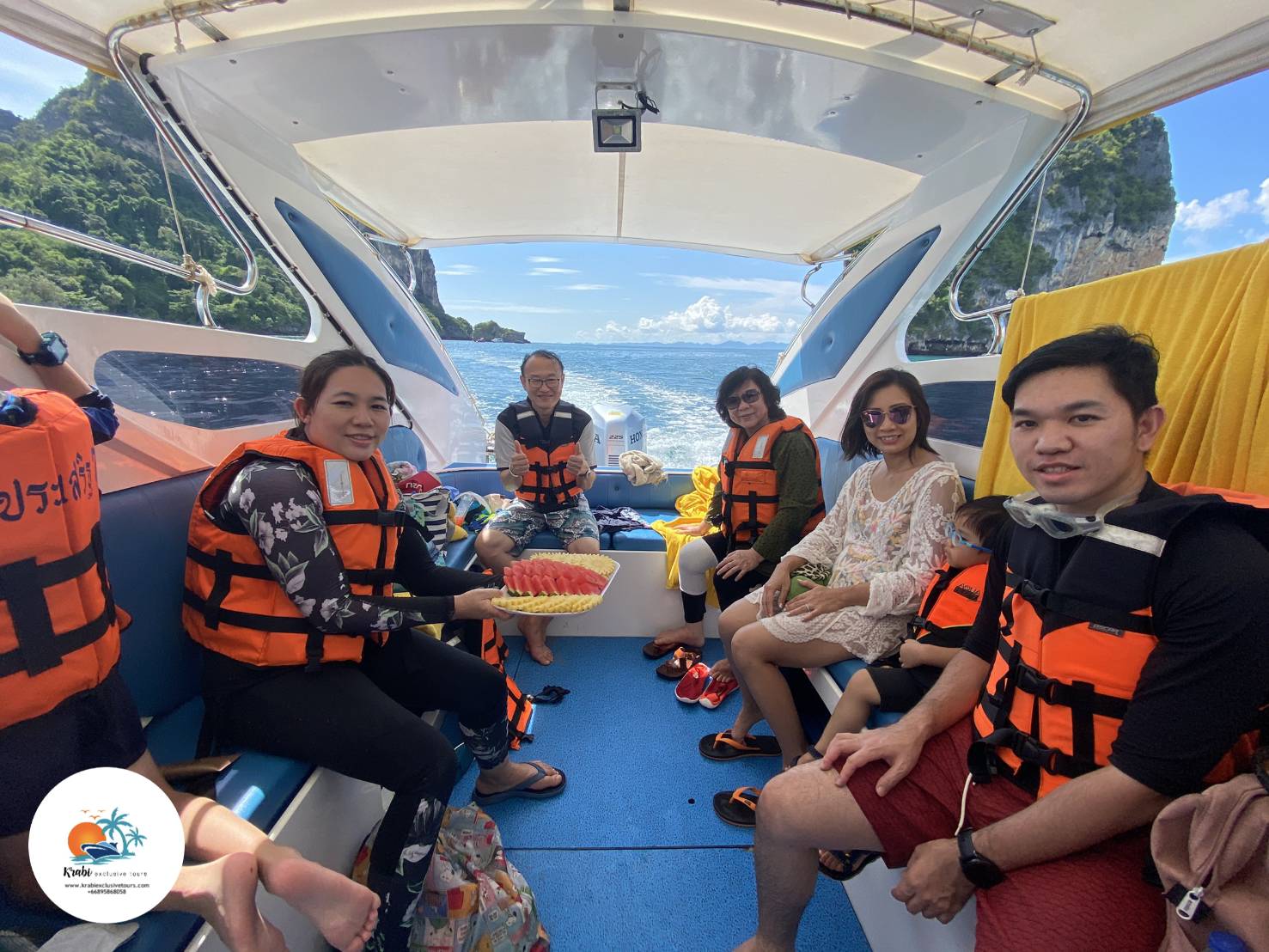 เริ่มการเดินทางโดยเรือเร็ว บนเรือมีบริการน้ำดื่ม เสื้อชูชีพ และ อุปกรณ์ดำน้ำ เพื่อความสะดวกสบายและความปลอดภัยตลอดการเดินทาง