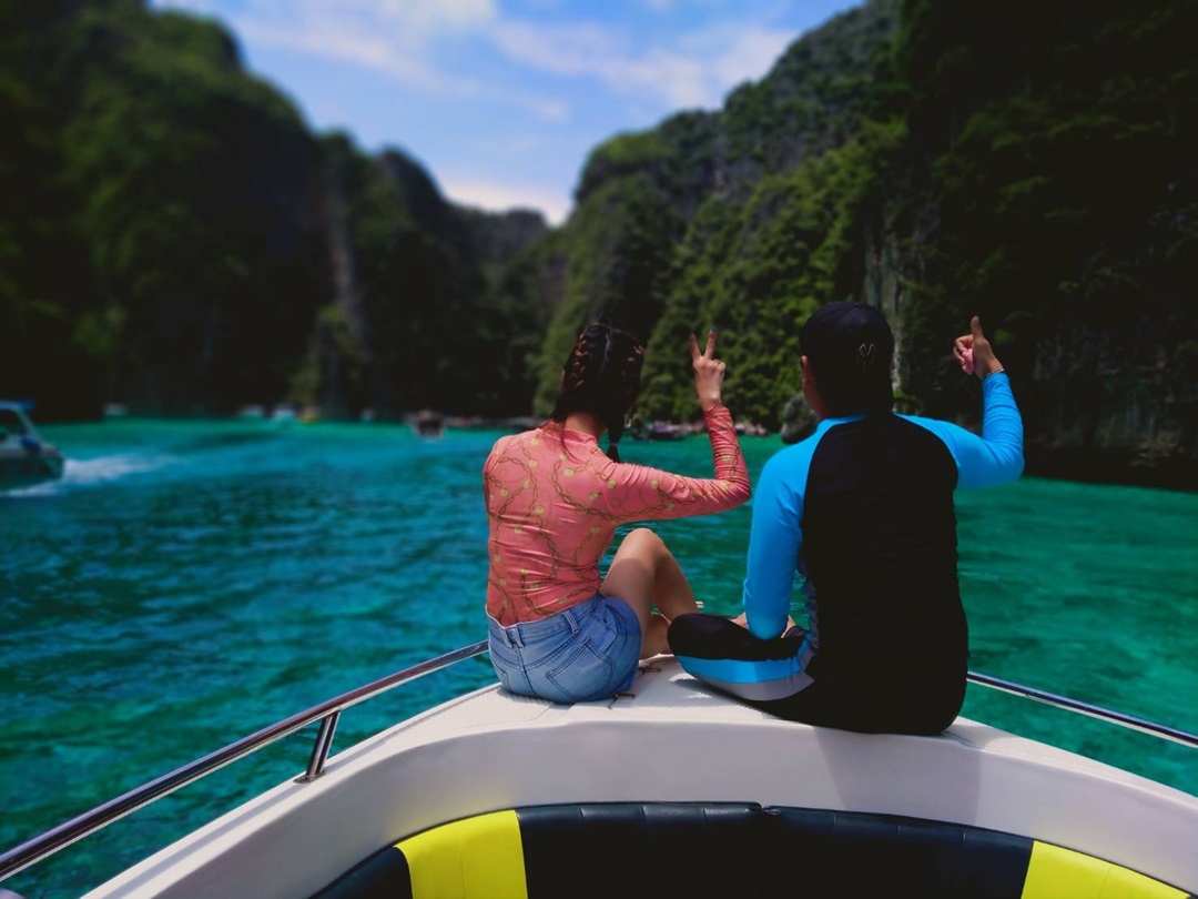 เริ่มการเดินทางโดยเรือเร็ว บนเรือมีบริการน้ำดื่ม เสื้อชูชีพ และ อุปกรณ์ดำน้ำ เพื่อความสะดวกสบายและความปลอดภัยตลอดการเดินทาง (ใช้เวลาประมาณ 45 นาที)