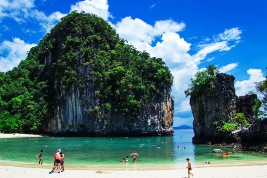 - เล่นน้ำในอ่าวห้อง (ลากูน) เป็นหาดด้านในของเกาะห้อง” (Koh-Hong)