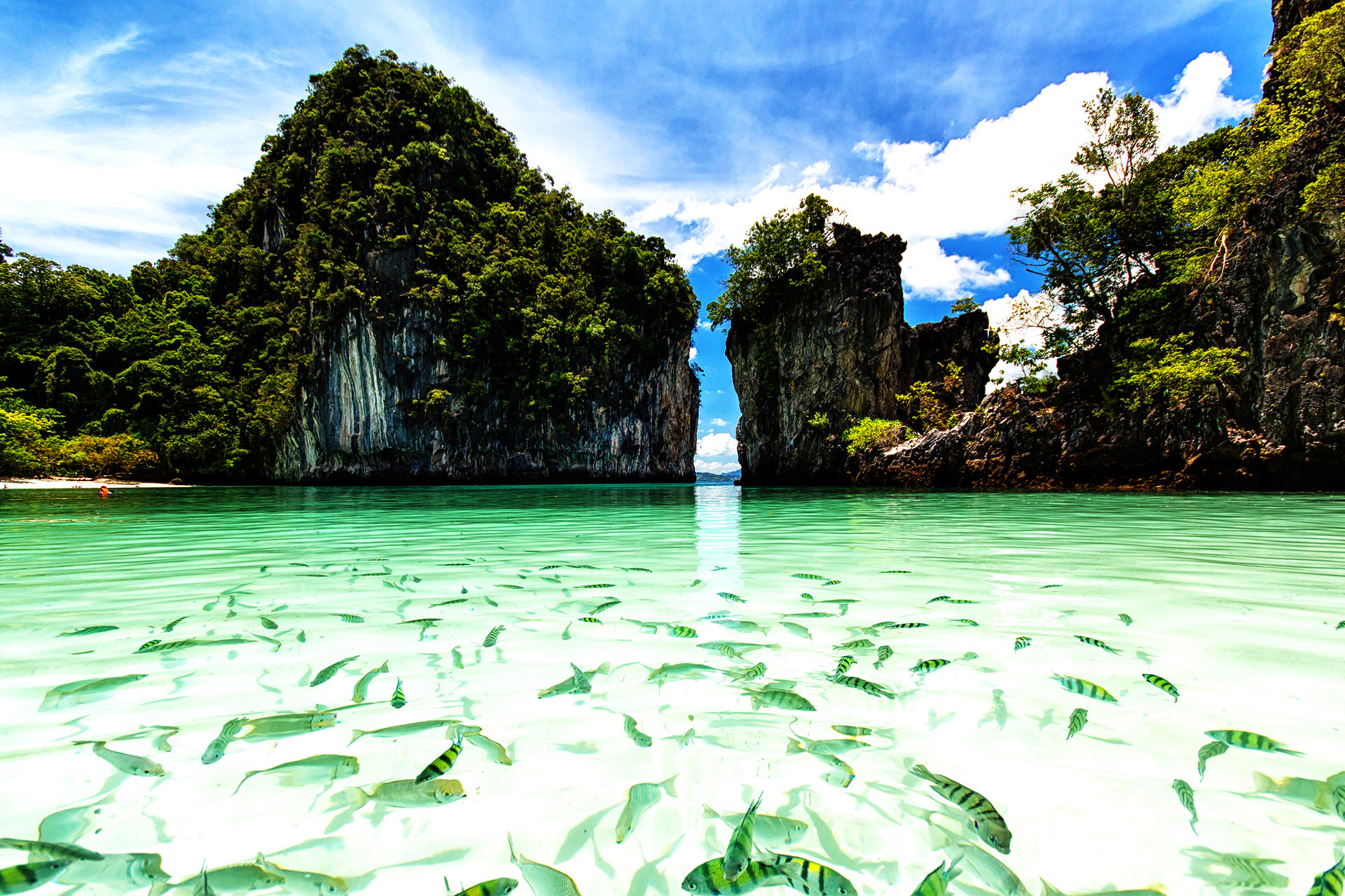 เริ่มการเดินทางโดยเรือหางยาว บนเรือมีบริการน้ำดื่ม เสื้อชูชีพ และ อุปกรณ์ดำน้ำเพื่อความสะดวกสบายและความปลอดภัยตลอดการเดินทาง