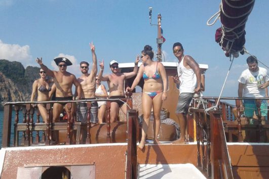 14.00 – 14.15 น. ออกเดินทางจากท่าเรืออ่าวน้ำเมา ผ่อนคลายด้วยเครื่องดื่มที่พร้อมเสิร์ฟบนเรือ และข้าวเหนียวมะม่วง