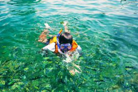 เริ่มการเดินทางโดยเรือหางยาว บนเรือมีบริการน้ำดื่ม เสื้อชูชีพ และ อุปกรณ์ดำน้ำ เพื่อความสะดวกสบายและความปลอดภัยตลอดการเดินทาง